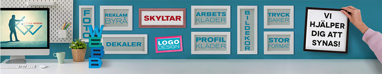Grafiska Verkstan är ett helserviceföretag inom marknadsföring, reklam och kommunikation. Vi hjälper dig att synas! För oss är ingen kund varken för stor eller för liten - vi brinner för att hjälpa alla våra kunder. Förutom att vi älskar design i alla dess former där vi tar fram loggor, broschyrer, webbsidor, content för sociala medier och annat så erbjuder vi även storformatsutskrifter, skyltar, bildekor och lastbilsdekor, dekaler, roll-ups och banderoller. Vi säljer även profilkläder och arbetskläder från de ledande leverantörerna. Med egen transfertryckning där vi trycker i vår egen lokal kan vi alltid serva våra kunder på bästa sätt. Vi på Grafiska Verkstan har lång erfarenhet av grafisk produktion och har hjälpt kunder att synas sedan år 2000.