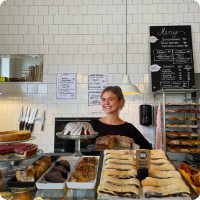 andra i Slottstaden. I Limhamn bakar vi allt på samma sätt som man gör hemma. Vi gör det med stor kärlek och omsorg.Vi har kanel och kardemummabullar, kakor som tex mazarinkaka, pärontosca, vaniljhjärtekaka mm. Vi gör goda smörgåsar på våra morotsbullar, rågkringlor eller kakas grova bröd. Så hos oss kan du få frukost, lunch, fika och ett härligt mellanmål. Det går bra att ta med eller sitta ner hos oss för att äta/fika. Varmt välkomna!