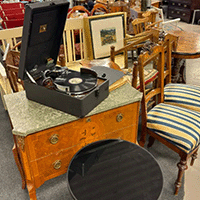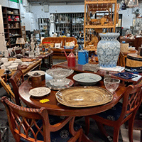 På vår besöksadress hittar ni vår loppmarknad/second hand-butik.