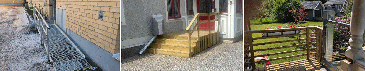 Vi samarbetar med flera lokala företag för att kunna erbjuda en pålitlig totalentreprenad för din bostadsanpassning. Oavsett om det handlar om att anpassa kök, sätta upp stödhandtag, ta bort trösklar, bygga ramper eller höja altaner och balkonger, så ser vi till att du får den hjälp du behöver.